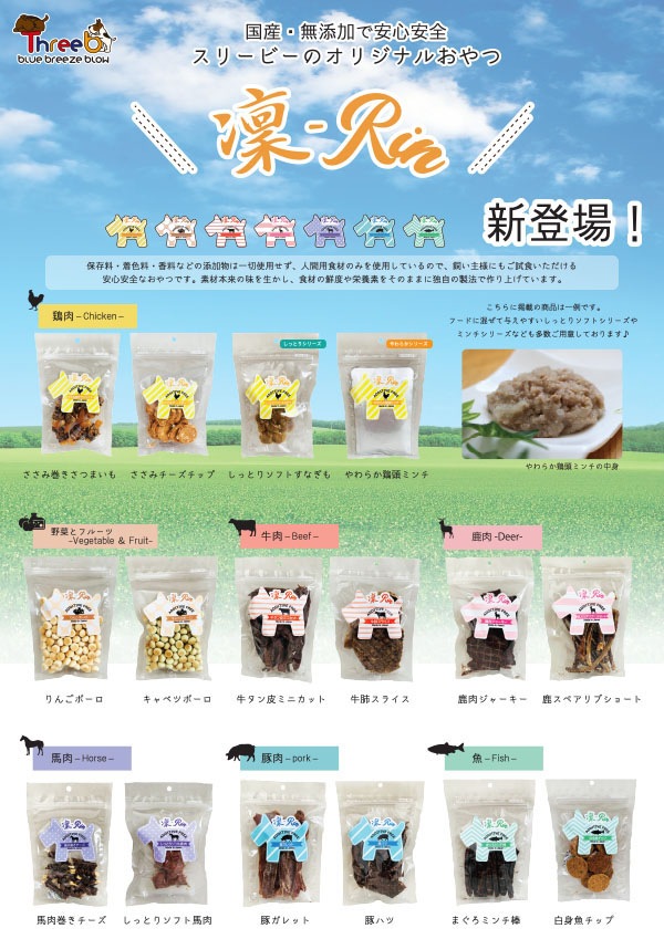保存料・着色料・香料などの添加物は一切使用せず、人間用の食材のみを使用しているので飼い主様にもご試食いただける安心・安全なおやつです。