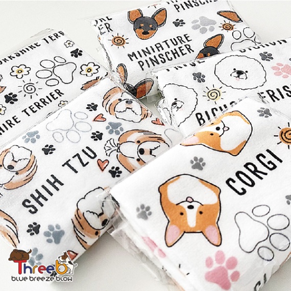 犬種がちりばめられた可愛い絵柄を今治タオルにプリントしました。
