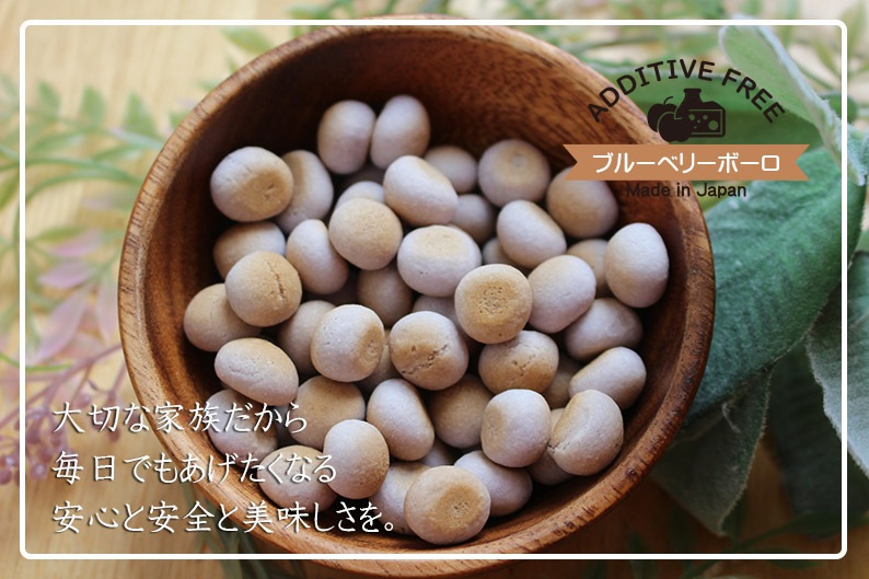 サクッホロッな食感が大人気のブルーベリーボーロは、果実の風味を生かしてやさしい味わいに仕上げました。