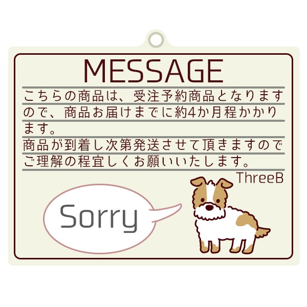| 配送 | こちらの商品は受注予約商品の為、お届けまでに4か月ほどかかります。 メール便不可商品。 宅配便にてお届けさせていただきます。 取寄せ商品と同時にご注文の場合は、全て揃ってからの発送となります。 |