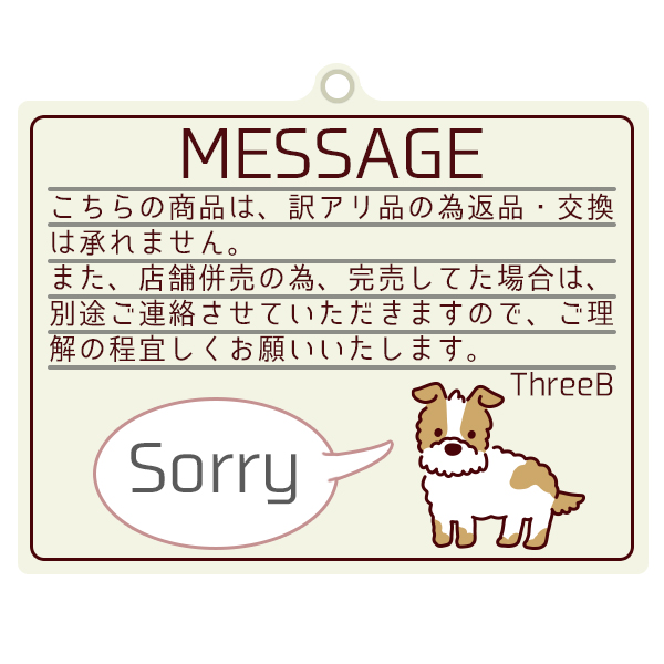 | ご注意 | モニターの発色の具合によって実際のものと色が異なる場合があります 2個までのご注文ならメール便でお届け可能です。 2個以上ご注文の場合は宅配便でお届けになります。またメール便対象外商品と同梱の場合は宅配便での発送となります。 ※目のパーツが左右逆になっている為、訳アリ品となっています。 |