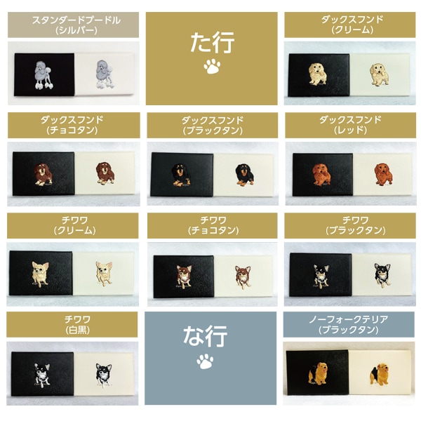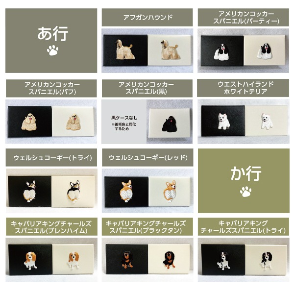 アフガンハウンド、アメリカンコッカースパニエル、アメコカ、ウェストハイランドホワイトテリア、ウエストハイランドホワイトテリア、ウエスティ、ウェスティ、ウェルシュコーギー、キャバリアキングチャールズスパニエル、ゴールデンレトリーバー、シーズー、シェットランドシープドッグ、シェルティ、柴、しば、ジャックラッセルテリア、シュナウザー、スコティッシュテリア、スコッチテリア、スコッティー、スタンダードプードル、スタンプー、ダックスフンド、チワワ、ノーフォークテリア、ノーリッチテリア、バーニーズマウンテンドッグ、パグ、パピヨン、ビションフリーゼ、プードル、トイプー、ブルドッグ、フレンチブルドッグ、フレブル、ペキニーズ、ボーダーコリー、ボストンテリア、ポメラニアン、マルチーズ、ヨークシャーテリア、ヨーキー、ラブラドールレトリーバー