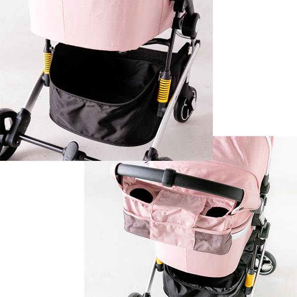 便利な大容量ボトルホルダーと急な雨や寒い季節でも安心の専用レインカバーを付属しています。