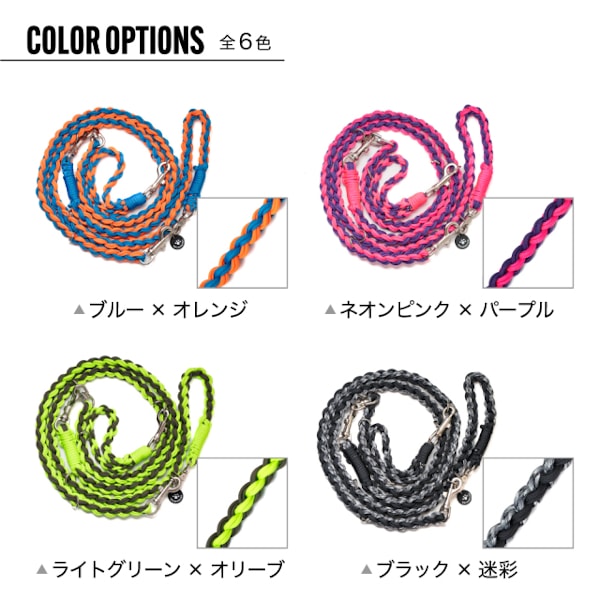 ・パラコード12本編みの当店で最も耐久性の高いリードです。