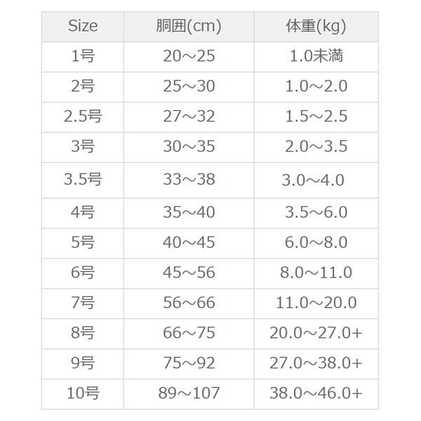 | サイズ | 1号、2号、2.5号、3号、3.5号、4号、4.5号、5号、6号、7号、8号、9号、10号 |