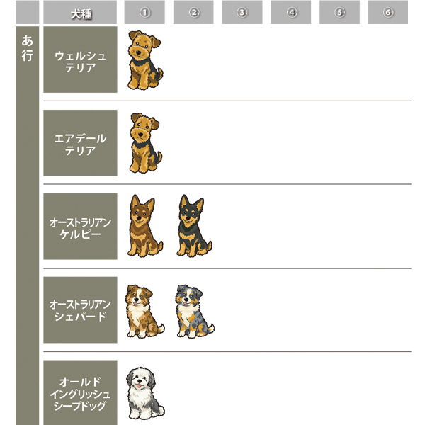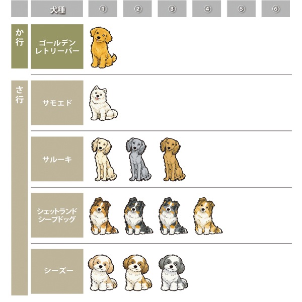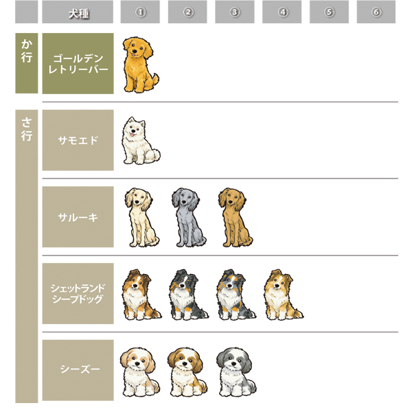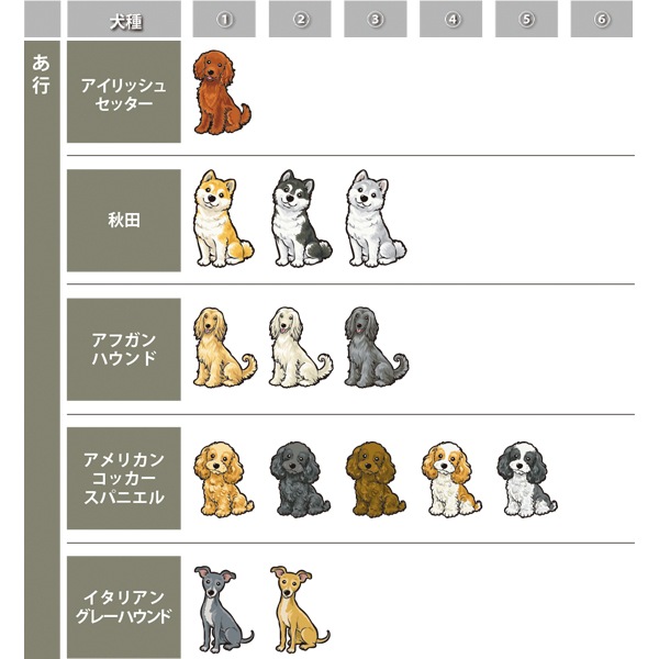 アイリッシュセッター、アイリッシュセター、秋田、あきた、アフガンハウンド、アメリカンコッカースパニエル、アメコカ、イタリアングレーハウンド、イタグレ、イングリッシュコッカースパニエル、イングリッシュスプリンガースパニエル、ウイペット、ウィペット、ウェストハイランドホワイトテリア、ウエストハイランドホワイトテリア、ウエスティ、ウェスティ、ウェルシュコーギー、ウェルシュテリア、エアデールテリア、オーストラリアンケルピー、オーストラリアンシェパード、オーシェパ、オールドイングリッシュシープドッグ、オーシー、キャバリアキングチャールズスパニエル、グレートデーン、グレートデン、グレートピレニーズ、グレピ、ケアーンテリア、ゴールデンレトリーバー、サモエド、サルーキ、シーズー、シェットランドシープドッグ、シェルティ、柴、しば、シベリアンハスキー、ジャックラッセルテリア、ジャーマンシェパードドッグ、シュナウザー、スキッパーキ、スコティッシュテリア、スコッチテリア、スコッティー、スピッツ、ダックスフンド、ダルメシアン、チャイニーズクレステッドドッグ、チャイクレ、チャウチャウ、チベタンスパニエル