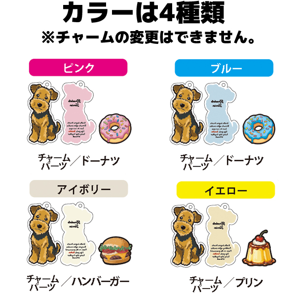 ちょこんとおすわりした【BABYBOO】の子犬たち。カラーは4タイプでそれぞれのカラーに合わせて付いているチャームパーツも違います!